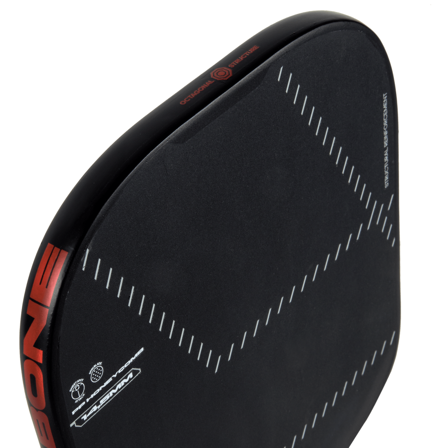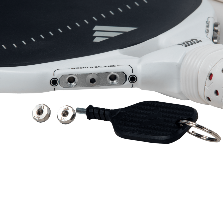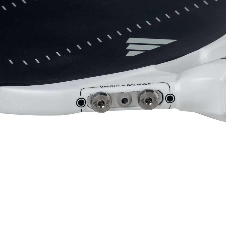 The METALBONE 14.5 is a high-performance pickleball paddle, designed to offer versatility and top-tier performance with every shot. Its unique construction, elongated shape, and larger sweet spot provide exceptional reach and stability, allowing you to control the game with precision and power. The 14.5 mm thickness offers the ideal balance between power and control, while the textured surface maximizes spin to generate greater effect on your shots. Additionally, the METALBONE 14.5 incorporates the innovative Weight & Balance System, a feature that allows you to adjust the paddle's balance and feel, perfectly adapting it to your individual playing style. Perfect for advanced players seeking a versatile paddle, this high-end racket will let you personalize your performance and optimize your game in every match. Dominate the court with the METALBONE 14.5!