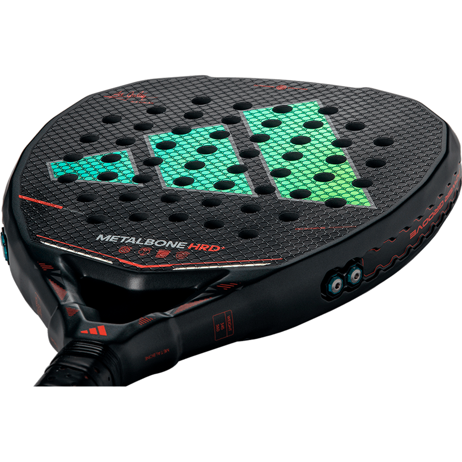 Si el ataque define tu juego — esta es tu pala. La adidas Metalbone HRD+ 2026, la pala de potencia de Ale Galán, está diseñada para golpear más fuerte, más rápido y más profundo. El Weight & Balance System te permite adaptar el balance para aumentar la potencia cuando el partido lo exige. La Octagonal Structure y el diseño Low Poly refuerzan el marco para transformar cada golpe en pura aceleración, mientras que el Carbon Aluminized 15K ofrece velocidad máxima de pelota. El núcleo High Memory, fabricado en goma EVA de alta densidad, aumenta la potencia en golpes de alta velocidad, ideal para jugadores de nivel avanzado. El Extra Power Grip, con su grip más largo, añade inercia y potencia, ayudando a cerrar el punto con mayor control y consistencia. Diseñada con y para Ale Galán — adidas Metalbone HRD+ 2026 es para jugadores que toman el control por la fuerza. Este año presentamos una gran novedad, la nueva cuerda de soga ajustable con una muñequera acolchada, que garantiza el máximo confort en la muñeca.