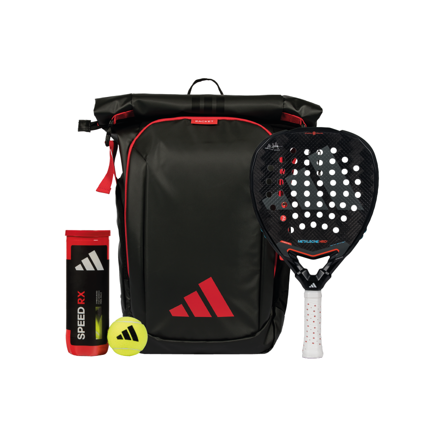 Este pack incluye la pala adidas Metalbone HRD+ 3.4 Ale Galán, la Mochila adidas Multigame Red – Ale Galán 2026 y las bolas adidas Speed Rx, ofreciendo una configuración completa para jugadores de pádel competitivos.