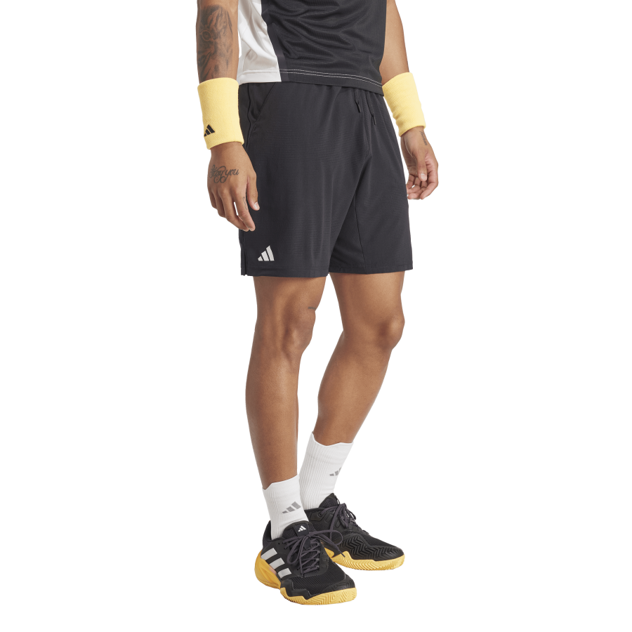 Creado para ayudarte a devolver cada golpe. Este pantalón corto de adidas presenta un corte ergonómico que te proporciona una total libertad de movimiento. Se ha confeccionado en un tejido elástico con tecnología transpirable HEAT.RDY que maximiza la sensación de frescura incluso en los momentos de mayor presión. El innovador diseño de los bolsillos mantiene las pelotas de pádel en su sitio y siempre a mano. Este producto contiene al menos un 70% de materiales reciclados. Utilizando materiales reciclados, reducimos los residuos, nuestra dependencia de los recursos finitos y la huella que generan los productos que fabricamos.