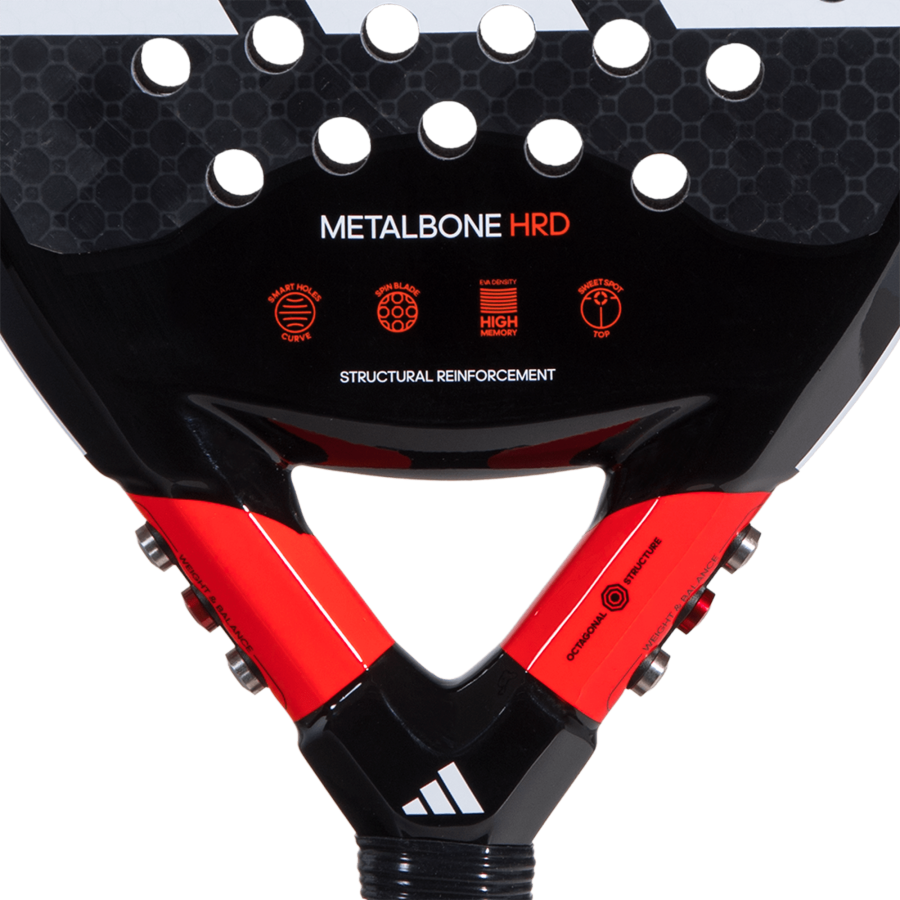 Cerchi una maggiore potenza nei tuoi colpi? La nuova METALBONE HRD 3.2 è la racchetta che fa al caso tuo. Incorpora le stesse tecnologie di METALBONE HRD 3.2, ma con un'importante differenza. All'interno troviamo la gomma EVA HIGH MEMORY, più dura e compatta. Questo dettaglio, aggiunto alla superficie in CARBONIO ALLUMINATO 2 a 1, ti permetterà di ottenere una potenza estrema nel colpo. Ma in questa racchetta non c’è solo la potenza. Presenta inoltre tutti i progressi che caratterizzano la Metalbone. Il telaio con tecnologia OCTAGONAL STRUCTURE aumenta la rigidità strutturale della racchetta rendendola più solida. Il sistema SPIN BLADE offre effetti superiori grazie al rilievo incorporato nella faccia della racchetta. E la tecnologia WEIGHT & BALANCE SYSTEM ti consente di personalizzare il bilanciamento grazie al sistema di pesi rimovibile integrato nell’anima della racchetta. Non c'è da stupirsi che una racchetta così spettacolare sia la scelta di Ale Galán, il giocatore numero 1 al mondo.
