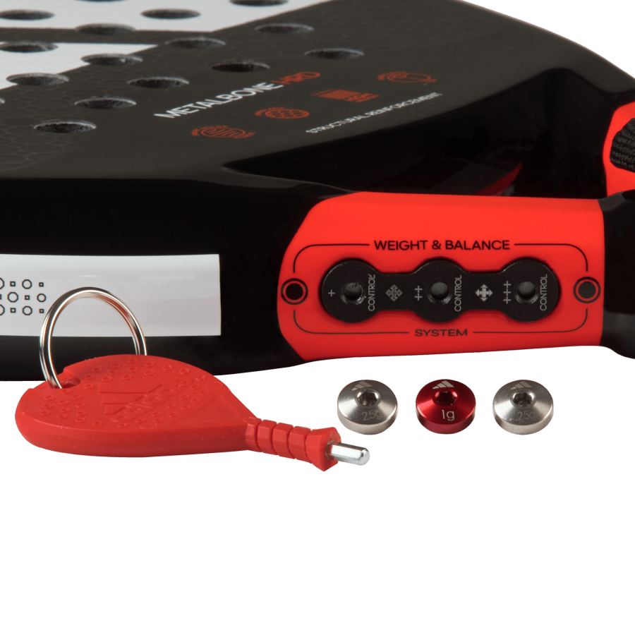 Personalizza la tua racchetta e adattala al tipo di gioco che vuoi adottare in ogni partita. La tecnologia WEIGHT & BALANCE SYSTEM, esclusiva di Adidas, si basa su un sistema di viti di peso diverso posizionate nel ponte della racchetta, che permettono di modificarne il bilanciamento. Se lasciamo i pesi, il bilanciamento della nostra Metalbone sarà nella parte medio-bassa della racchetta, il che ci darà un maggiore controllo. Se rimuoviamo le viti, riduciamo il peso, alziamo il bilanciamento fino a 1,5 cm e orientiamo la racchetta più per l'attacco.