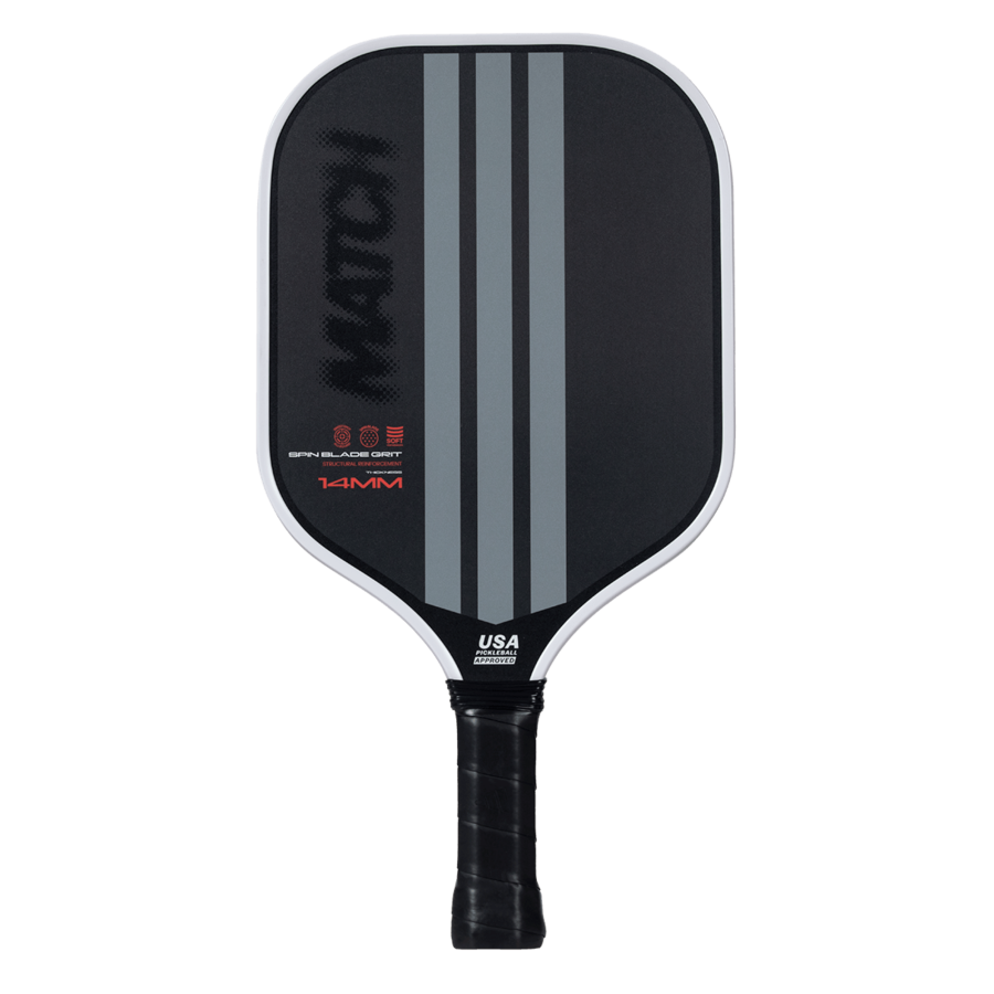 A MATCH é uma raquete de pickleball versátil, especialmente desenhada para jogadores intermédios que procuram um equilíbrio perfeito entre controlo, potência e conforto. O seu design equilibrado e a sua superfície em fibra de vidro oferecem uma sensação suave e confortável, ideal para quem quer melhorar o seu jogo sem perder precisão. Com a sua forma all-round e o ponto doce centrado, esta raquete facilita o manuseamento e a colocação dos golpes na pista, permitindo um jogo mais fluido e eficaz. A espessura de 14 mm proporciona uma combinação de rigidez e potência, permitindo um golpe mais forte sem comprometer o controlo. Além disso, a sua superfície texturizada maximiza o spin, oferecendo um maior efeito em cada golpe. A MATCH é a opção perfeita para jogadores intermédios que desejam uma raquete que permita controlar o jogo com facilidade, enquanto mantêm a potência e o controlo em cada movimento.
