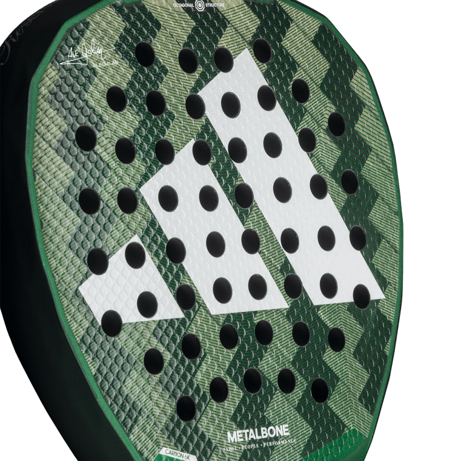 A adidas Metalbone Reserve EDT, assinada por Ale Galán, é a raquete definitiva para jogadores de padel de alto nível, projetada exclusivamente para a Reserve Cup. Combinando tecnologias avançadas e materiais de primeira qualidade, esta raquete é ideal para quem procura um desempenho superior. A Octagonal Structure reduz a torção, oferecendo uma precisão incrível a cada golpe, enquanto o Power Extra Grip melhora a inércia e permite golpes mais rápidos e poderosos. O design Low Poly no quadro e no coração otimiza a rigidez estrutural, proporcionando um excelente controlo nos golpes mais exigentes. Além disso, o relevo Spin Blade Decal garante um controlo perfeito para executar efeitos de alta precisão. Com uma goma EVA Soft Performance e fibra de Carbono 6K, a Metalbone Reserve EDT oferece um equilíbrio entre controlo e potência, adaptando-se perfeitamente ao jogo ofensivo. Com a estética exclusiva e a tecnologia de ponta, a adidas Metalbone Reserve EDT não é apenas uma ferramenta de alto desempenho, mas também um símbolo de exclusividade no padel durante a Reserve Cup. Perfeita para quem procura o melhor no seu jogo.