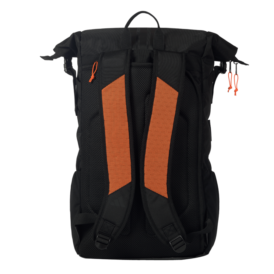 Den perfekta vardagsryggsäcken, utformad med ett huvudfack med justerbar volym tack vare den innovativa ”Rolltop”-öppningen. Inuti finns en speciell ficka för ömtåliga föremål och en avdelare som är idealisk för din dator eller racket. Dessutom finns det två sidofickor i elastiskt nät för vattenflaskor och två vadderade fack: ett främre med värmeisolering och ett bakre för att skydda din bärbara dator på ett säkert sätt. Den förstärkta botten garanterar exceptionell hållbarhet, medan de justerbara vadderade nätremmarna och ryggpanelen garanterar bekväm bärning.