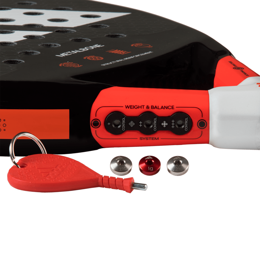 Налаштуйте свою ракетку та адаптуйте її до типу гри, яку ви хочете розвивати в кожному матчі. Технологія WEIGHT & BALANCE SYSTEM, ексклюзивна від Adidas, заснована на системі гвинтів різної ваги, розташованих на містку ракетки, які дозволяють змінювати її баланс. Якщо ми залишимо вагу, баланс нашої ракетки Metalbone буде в нижній середній частині ракетки, що надасть нам більше контролю. Якщо прибрати гвинти, ми зменшимо вагу, піднімемо баланс до 1,5см і направимо ракетку більше в атаку.